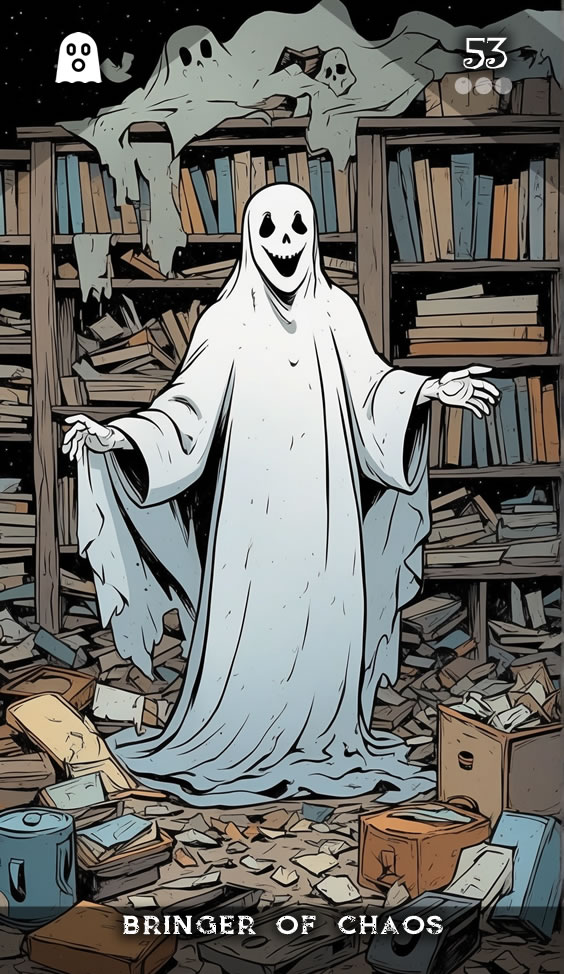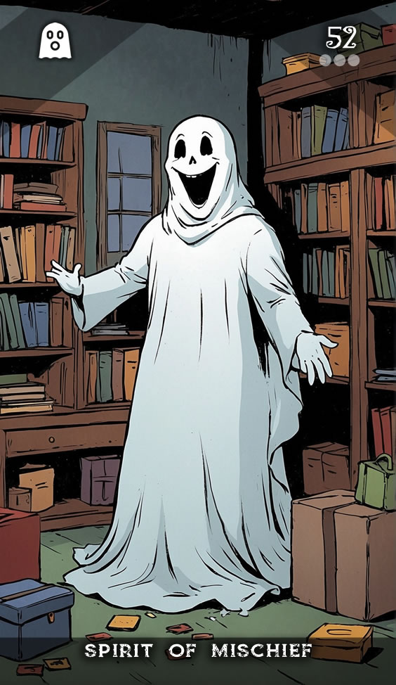 52-56. Boisterous Spirit Card – Often responsible for physical disturbances, these spirits manifest their presence in tangible ways.